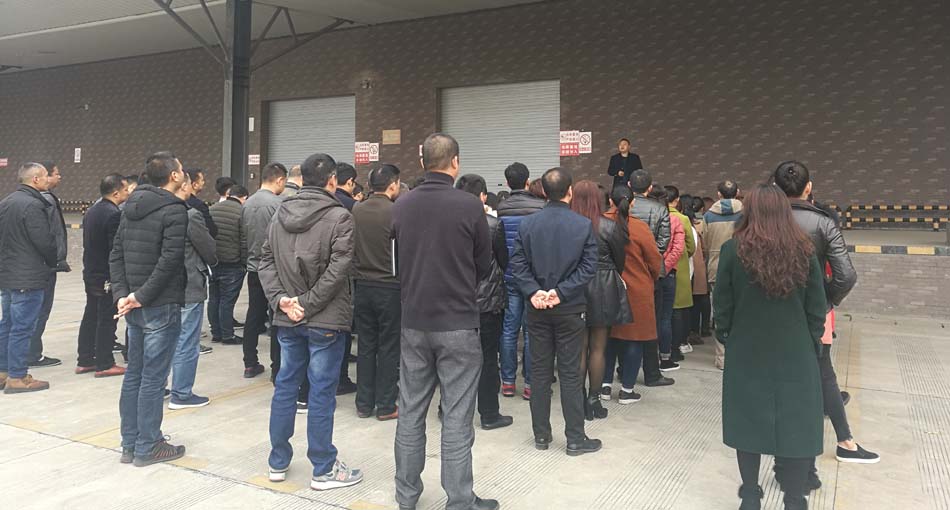 春回大地,万物复苏。2018年2月27日,四川天伦食品全体员工在天伦邛崃工厂六号仓库外召开了动员大会。 会议全面动员公司员工收心归位,提神鼓劲,加压实干,以更加振奋的精神、更加扎实的举措、更加务实的作风,确保圆满完成全年目标任务。