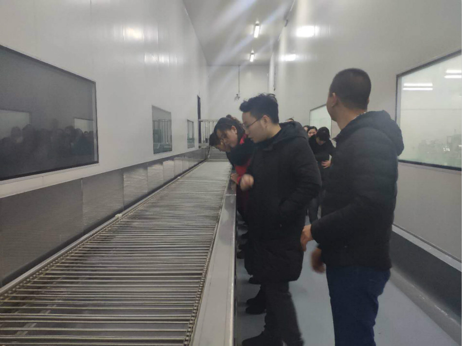 在吴总、李总的带领下,销售部员工先后参观了办公楼,监控室,质量检测中心,粽子成型、馅料车间,月饼主车间,以及手工车间。月饼主车间的自动化流程、流水线作业、月饼制作工艺的精工细琢,让参观员工大开眼界。